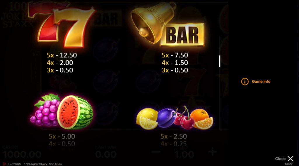 Winning requires landing three to five matching symbols on any of the 100 active paylines, starting from the leftmost reel and moving consecutively to the right. The symbols themselves are a beautiful, high-definition tribute to the original fruit machine aesthetic. The lower-tier symbols include classic cherries, lemons, plums, and oranges, which provide steady, smaller wins to keep your balance ticking over. Moving up the paytable, you’ll find watermelons and grapes, followed by the premium icons: the golden BAR, the golden bell, and two variations of the iconic Lucky Number 7 (red and yellow).