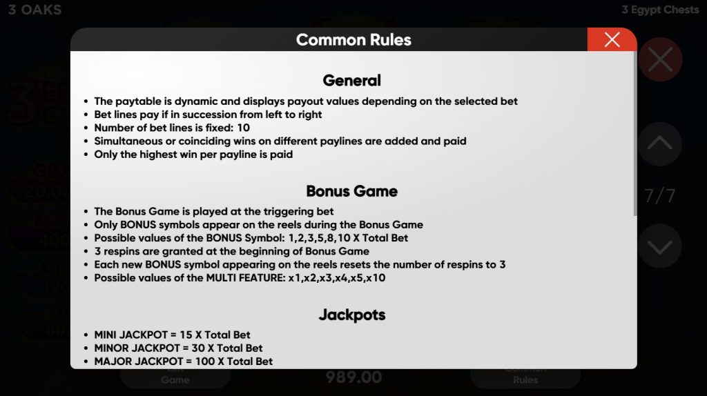 The true excitement of the 3 Egypt Chests slot lies in its rich array of bonus features. 3 Oaks Gaming is famous for its intricate Hold and Win mechanics, and they have brought their A-game to this release.