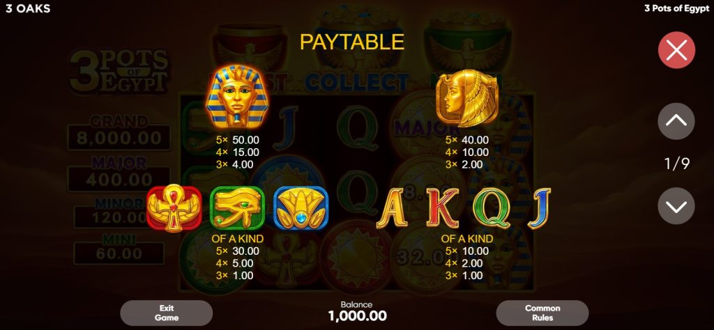 In conclusion, 3 Oaks has once again proven their mastery of the Hold and Win formula. 3 Pots of Egypt is a testament to the fact that a game doesn’t need to be overwhelmingly complex to be thoroughly enjoyable. By blending a classic theme with rewarding pot-collection mechanics and exciting jackpot opportunities, it stands as a solid, dependable, and fun video slot. So, grab your explorer’s hat, brave the desert heat, and see if the pharaohs will grant you their hidden fortunes today.
