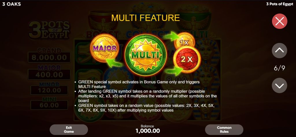 The beating heart of the online 3 Pots of Egypt experience is undoubtedly its robust selection of features and bonuses. 3 Oaks has built a strong reputation on their Hold and Win mechanics, and they have refined it beautifully in this release.