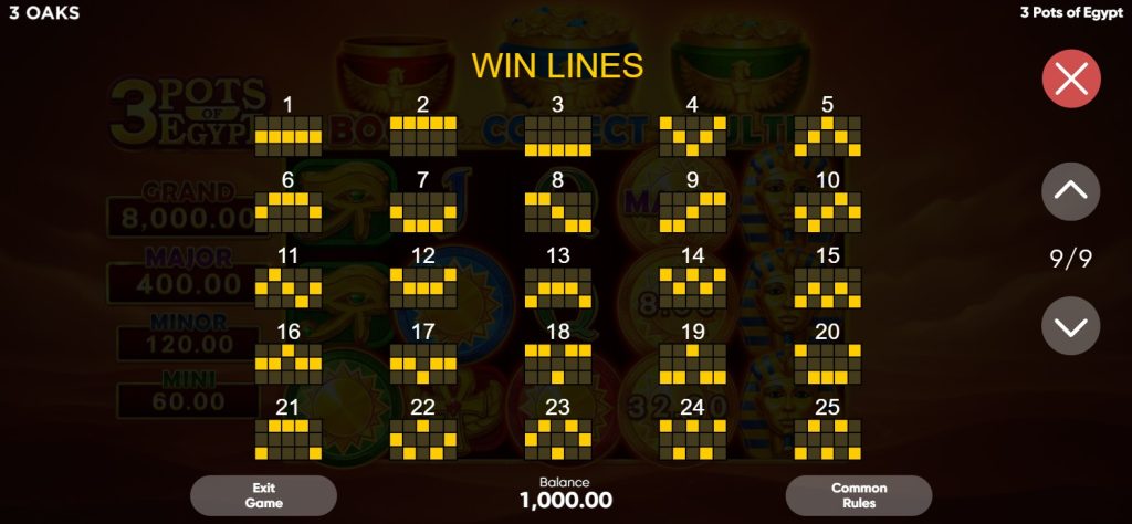 Before you pack your bags for this virtual desert trek, it is essential to understand the foundational specifications of the 3 Pots of Egypt casino game. At its core, the game operates on a classic 5-reel, 3-row grid, offering 25 fixed paylines for players to land winning combinations across. The betting range is highly accessible, accommodating a wide spectrum of bankrolls. Players can place minimum bets starting at just $0.20 per spin, while high rollers can push the stakes up to $30 (or $32 depending on the specific casino platform) per spin.