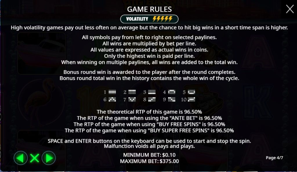 Players can purchase standard Free Spins for 100x the base bet, or super free spins for 300x the base bet.