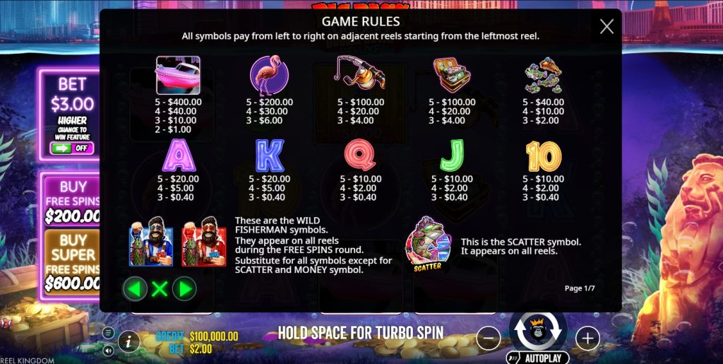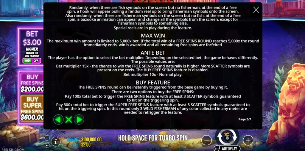 Activating the 1.5x ante bet increases the stake by 50% to naturally boost the scatter symbol hit frequency without using the 100x or 300x super free option. Random modifiers like the dynamite and bazooka activate during the deluxe free rounds when wilds land without money symbols, adding random paying fishes to the grid to guarantee collection payouts. Utilizing a casino deposit bonus can extend the bankroll needed to access these 4-tier mechanics.