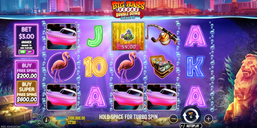 Big Bass Vegas Double Down Deluxe is a 5×3 gaming slot by Pragmatic Play released 12/09/2024, featuring a 5,000x max win and 10 ways to win, the Big Bass. Big Bass Vegas Double Down Deluxe slot integrates a neon Las Vegas aesthetic into the established fishing series, replacing traditional marine backgrounds with underwater cityscapes and flamingo graphics. The gaming slot maintains the core Reel Kingdom collection mechanics while introducing dual progression meters for the blue fisherman wild and red fisherman wild symbols.